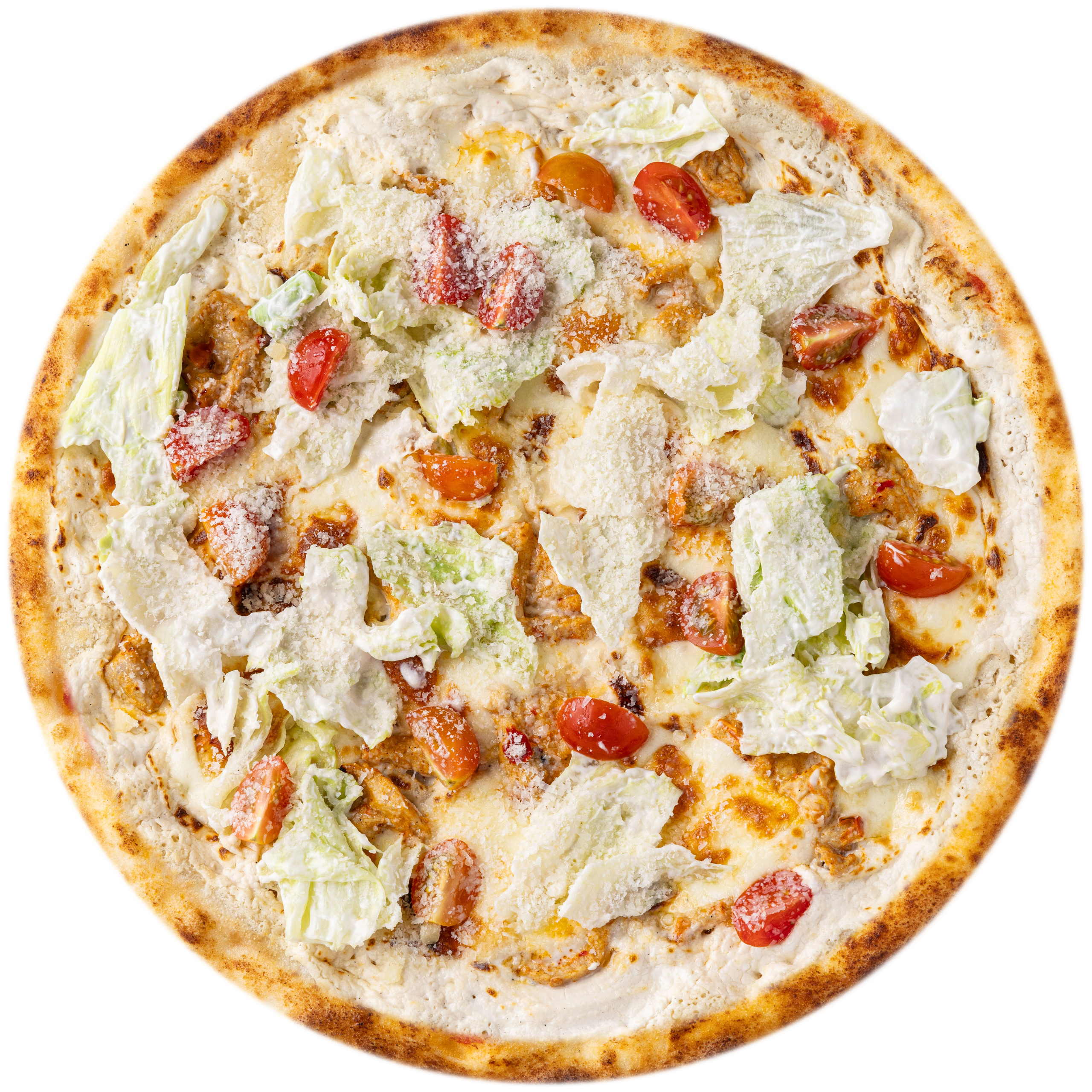 Пицца «Цезарь» — это тонкое тесто с нежным сливочным соусом, куриным филе, свежими черри и хрустящим салатом айсберг. Всё завершается щедрой порцией тертого пармезана, создавая идеальное сочетание вкусов и текстур в каждом кусочке.
