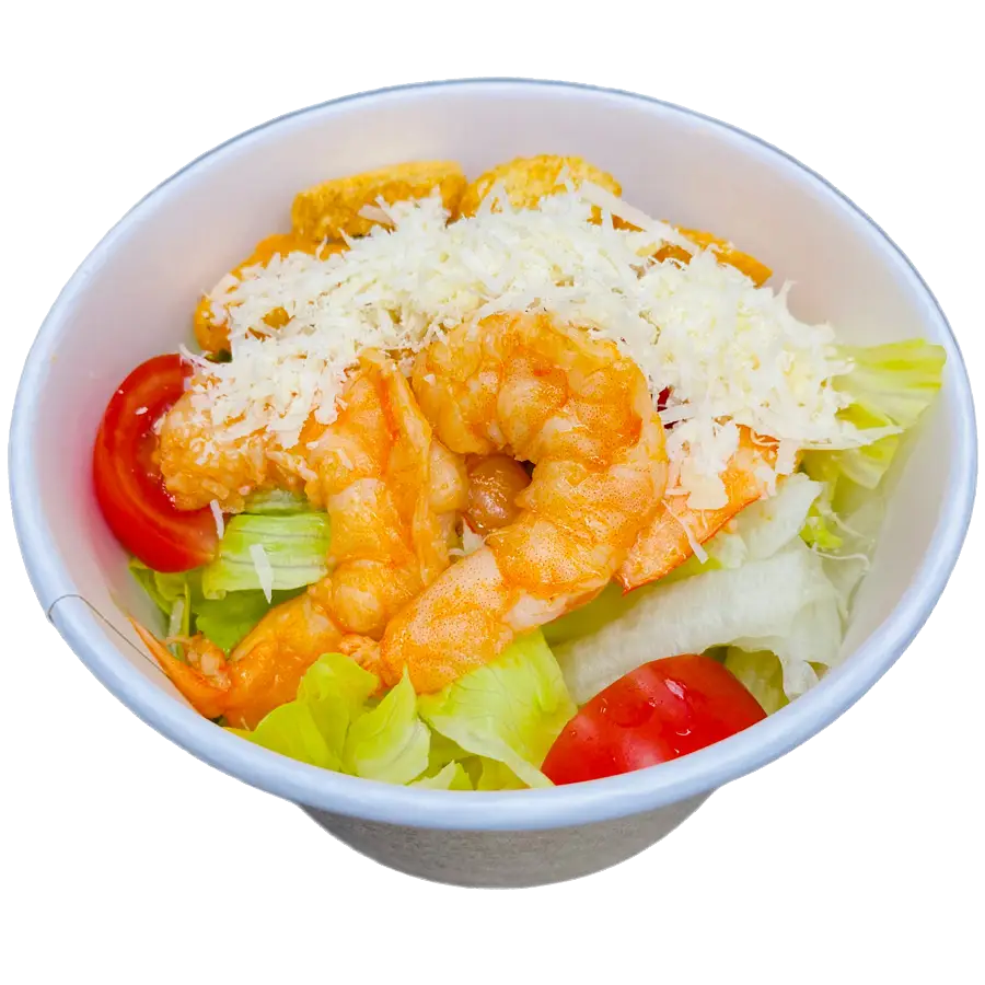 Цезарь приобретает новое, изысканное наполнение вкуса благодаря добавлению тигровой креветки приготовленной по технологии Су-вид (от фр. sous-vide, «под вакуумом») Идея метода в том, что еда равномерно прогревается, сохраняя максимум соков, ароматов и питательных веществ. Пряная креветка идеально сочетаются с хрустящими листьями салата айсберга, нежным соусом Цезарь, золотистыми гренками и терпким пармезаном. Этот салат – прекрасный выбор для тех, кто ценит изысканность и богатство вкуса.