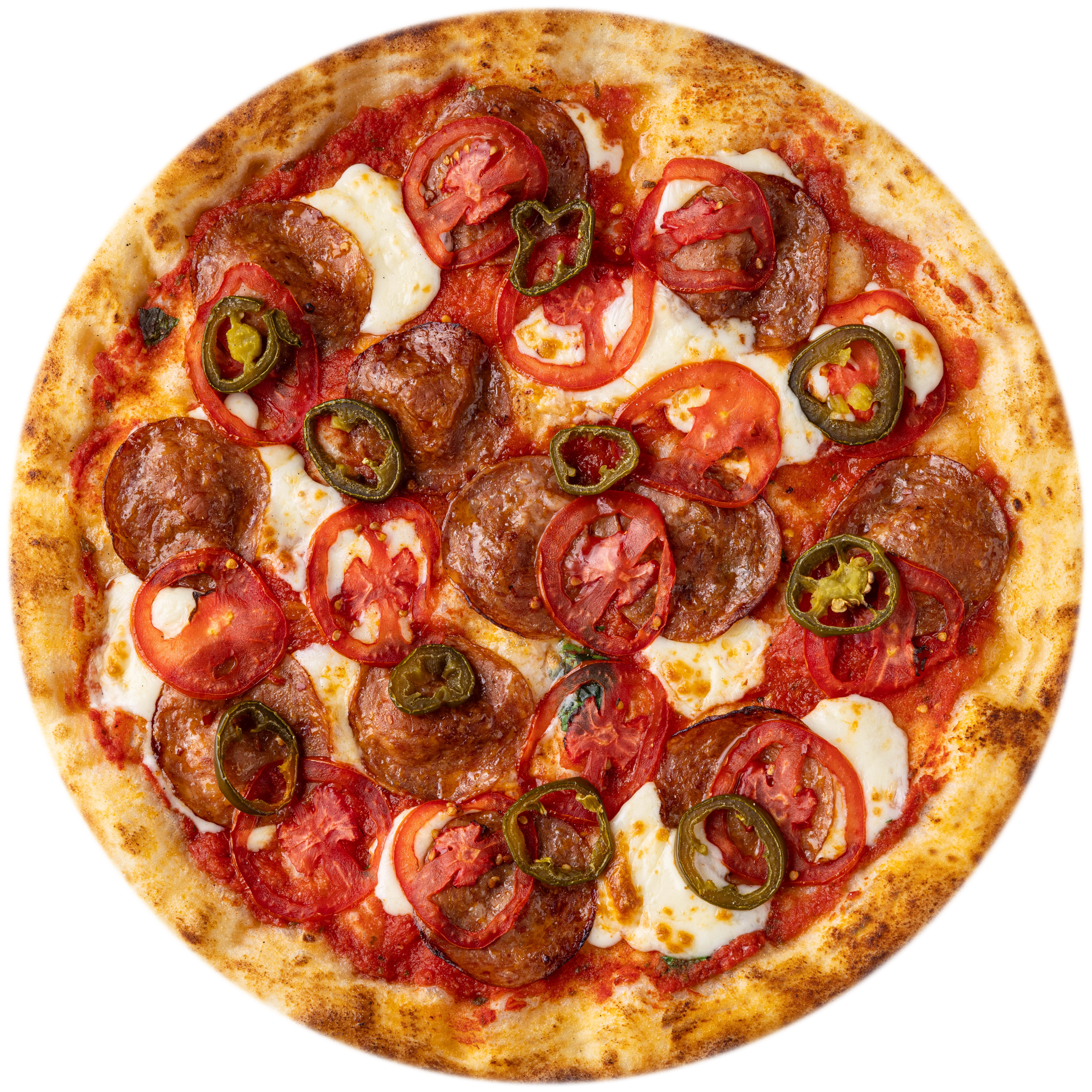 Пицца «Чоризо» — это насыщенный вкус острой салями, дополненный сочными томатами, халапеньо и расплавленным сыром моцарелла на тонкой хрустящей основе. Пикантные специи придают блюду яркость и характер, делая его выбором для тех, кто любит остроту.