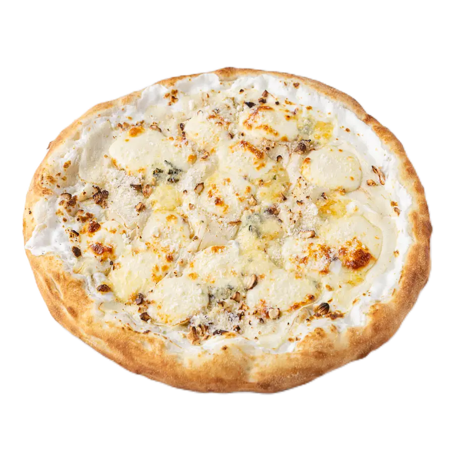 Пицца «Груша Горгонзола» — это изысканное сочетание сладкой груши и пикантного сыра Горгонзола на тонком тесте. Сливочный соус и орехи добавляют глубину вкуса, создавая гармоничное и утонченное блюдо для ценителей.