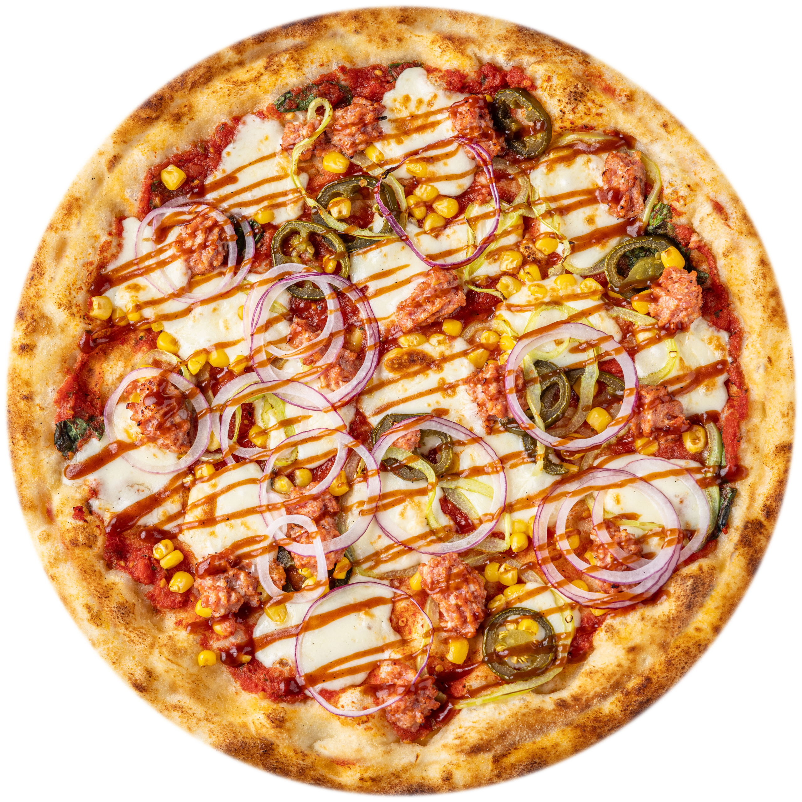 Пицца «Мексиканская» — это яркое сочетание острого перца, жареного лука, сочного рубленного мяса, сладкой кукурузы и соуса барбекю на тонком тесте. Тянущийся сыр моцарелла и пикантные специи добавляют насыщенность, создавая взрывной вкус, который понравится любителям острых блюд.