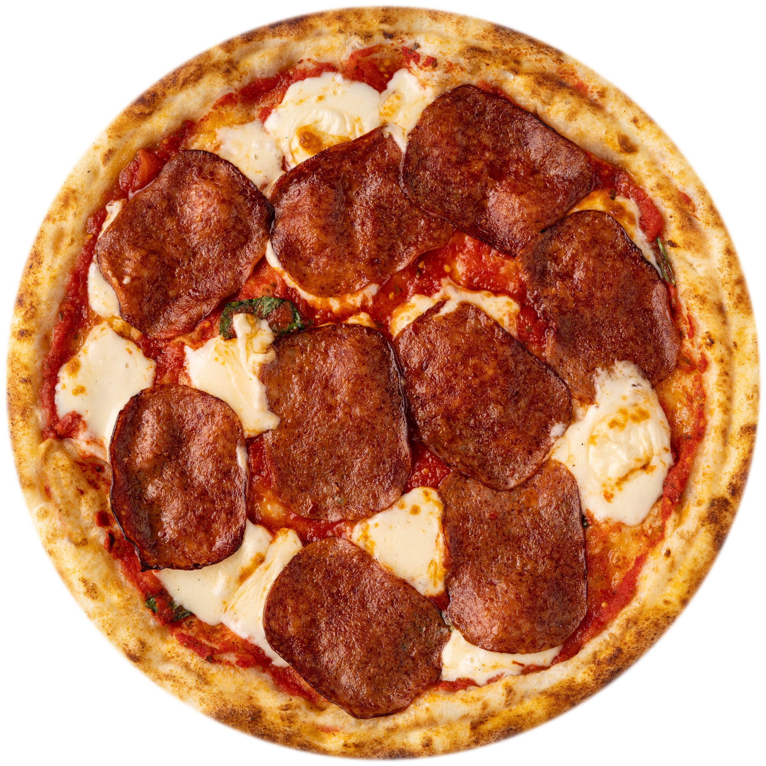 Пицца «Пепперони» —это тонкое тесто, покрытое томатным соусом и щедрым слоем расплавленного сыра моцарелла, дополненное пряными ломтиками острой салями пепперони. Каждый кусочек обладает насыщенным вкусом и лёгкой пикантностью, идеально подходящей для любителей остроты.