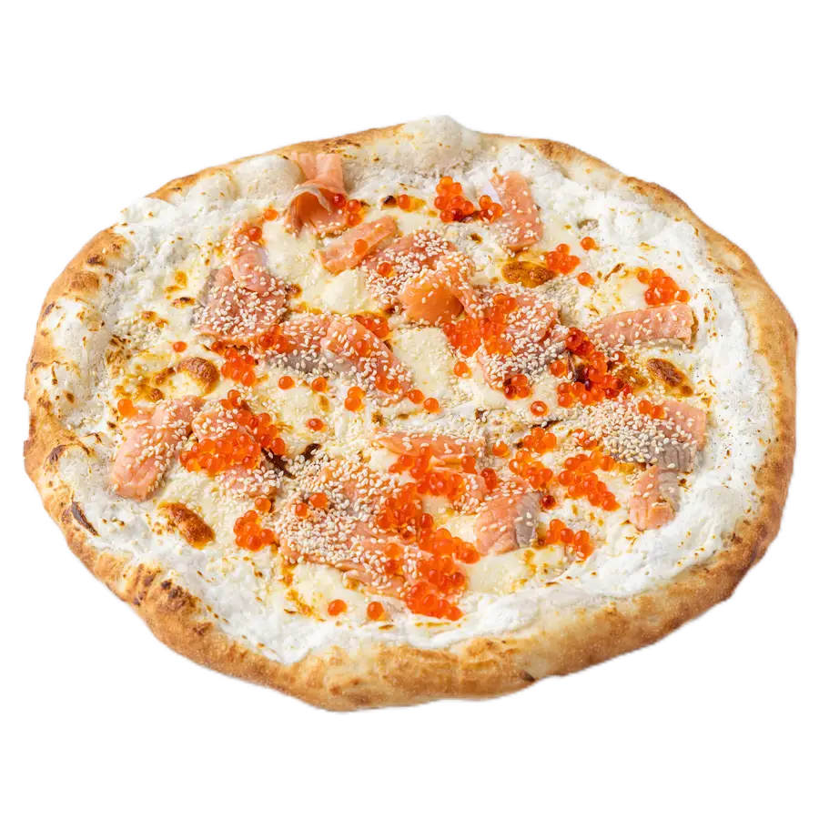 Пицца «Филадельфия» — это сочетание нежного соуса из сливочного крем чиза, тонких ломтиков лосося, красной икры и нежного сыра страчателла на хрустящей основе. Каждый кусочек дарит освежающий вкус и изысканную текстуру, идеальную для любителей легких и деликатных блюд.