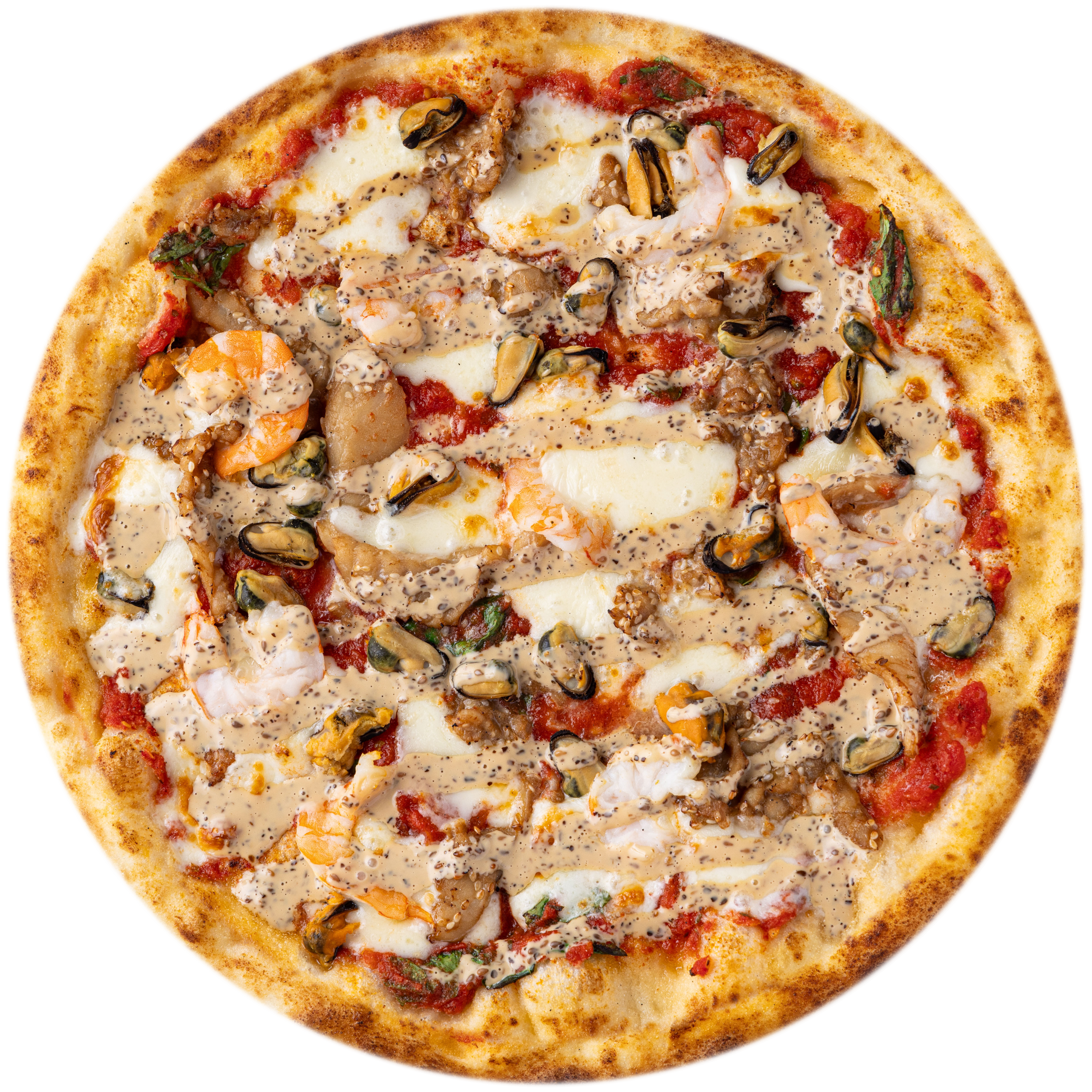 Пицца «Морская» — это богатое сочетание рыбы и морепродуктов: тигровых креветок, угря и мидий на нежной основе. Слои сыра моцарелла, соуса из томатов и ароматных трав подчёркивают вкус морских даров, создавая уникальное блюдо для настоящих гурманов.
